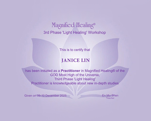 六年前,我踏上了身心靈的學習之路,這是一段自我療癒的旅程。在這條路上,我不僅療癒了自己,也將這份光傳遞給他人。每一次的公益個案,都是我心靈的延伸,讓我在幫助他人的同時,也重新認識了自己。這兩年來,我如同一位渴求知識的學者,不斷探索新的療癒工具,渴望將這些智慧融入我的生命,並分享給更多的靈魂。